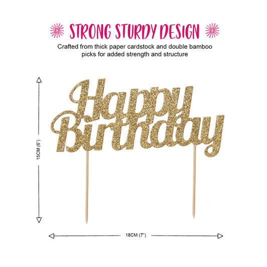 Glitter Happy Bday Cake Topper Gold AH.J088