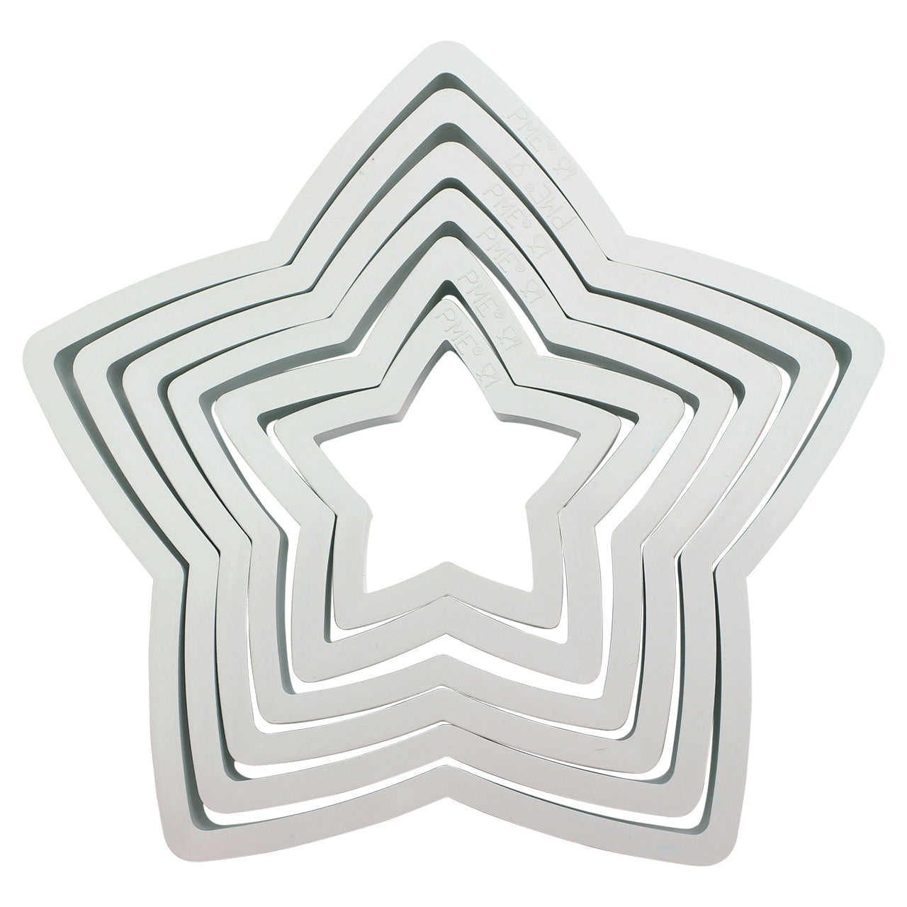 These plastic cutters are effective and durable. Use them on cookies, fondant or even cakes to create shapes. The wide range of sizes mean you can create multiple sizes with just this one set. Set of 6 PME Star Cutters great for making cookies, fancy plaques and simple yet effective shapes for cakes. Made from hard wearing ABS Thermoplastic, these cutters are easy to use and clean. Measurements: 40 mm (1.6") Small, 56 mm (2.2") Medium, 75 mm (3") Large, 87 mm (3.4") XL, 102 mm (4") XXL, 118 mm (4.6") XXXL.