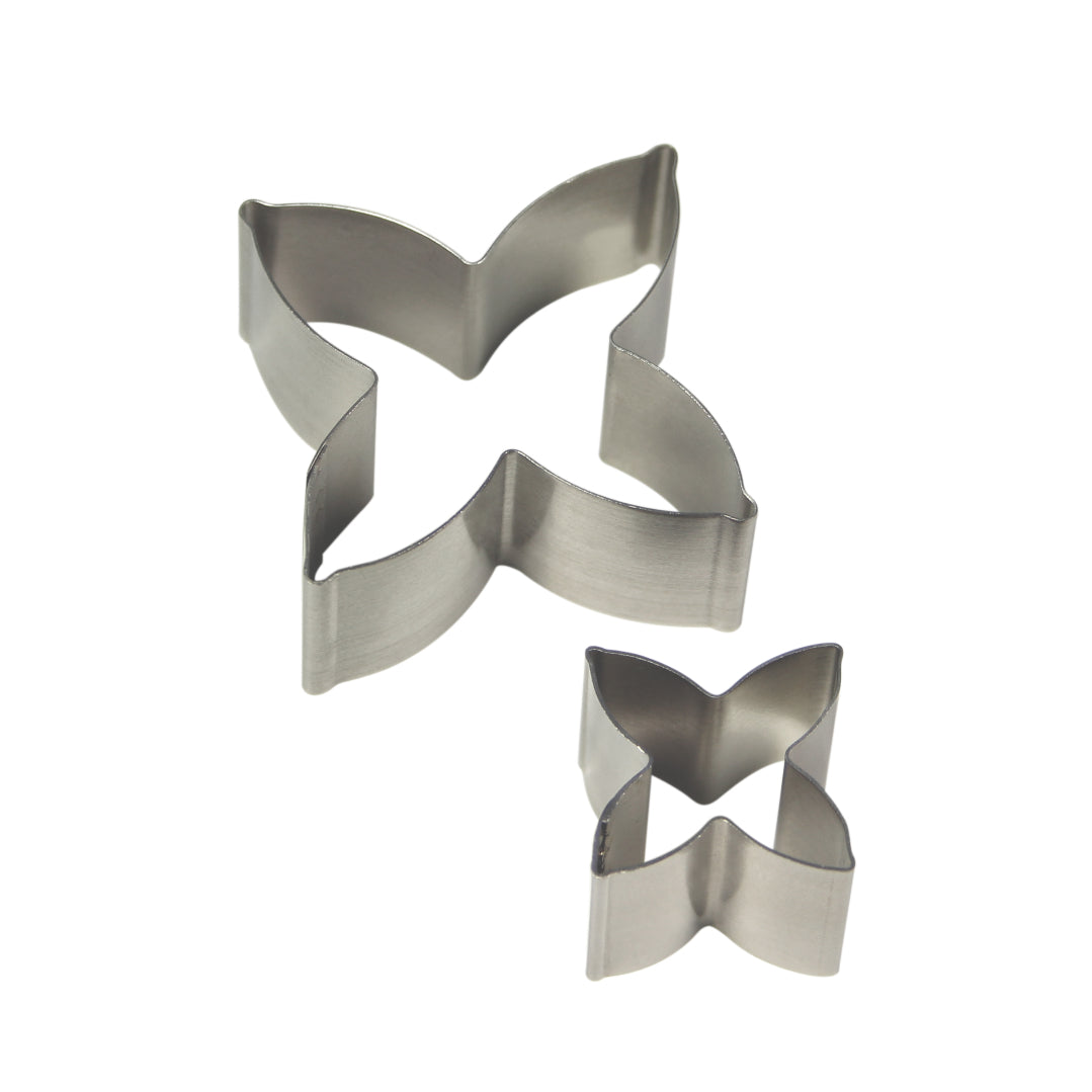 Set of 2 metal Daphne icing flower cutters by PME Good quality Daphne flower petal sugar craft cutters in popular sizes. Approx 18mm and 25mm diameter Quality stainless steel cutters - becoming much rarer nowadays Dishwasher safe - but we advise dry thoroughly and even keep a spot of cooking oil on seams to displace moisture and prevent tarnishing Retail packed with instructions