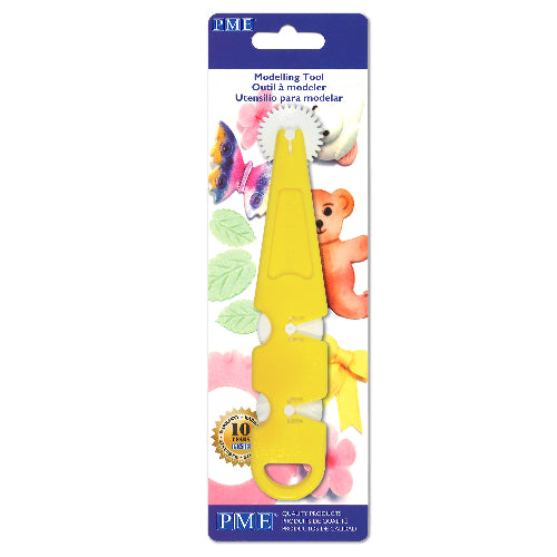 The Design Wheeler Modelling Tool can be used with a variety of materials, such as gum paste, marzipan, sugar paste, modeling chocolate, fondant, etc. This tool has three interchangeable wheels stored in the handle; Plain, serrated & fluted interchangeable wheels. It can be used for a wide variety of purposes including cutting material with different patterns, to vein or mark on cakes or modelled pieces. It is made from a long wearing, food safe & easy to clean plastic.