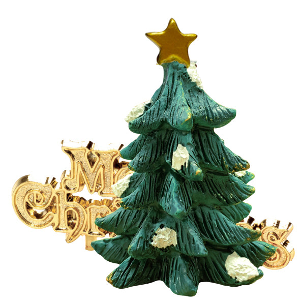 This two piece cake decorating set includes a beautifully hand-painted Green Forest Tree figurine and gold 'Merry Christmas' motto. The Forest Tree figurine features a gold star and is dusted with snow. Makes a great post celebration keepsake too.