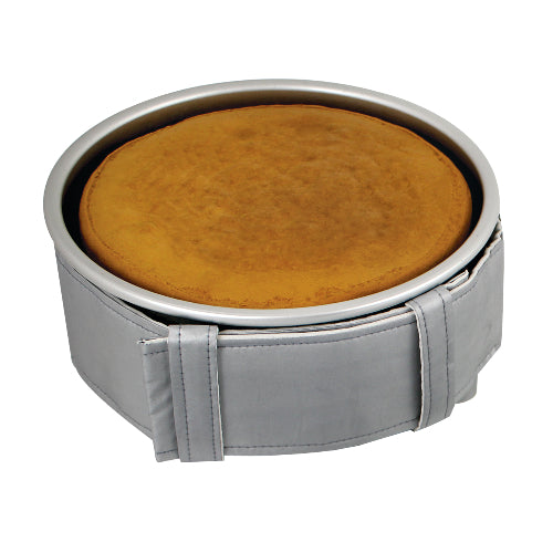 These baking belts are every baker’s dream. Never worry about a cake having a crack or having risen in the centres. This belt will fit: Round pan: 9"-11". Square pan: 6"-9" To clean use a damp cloth. It is for 4” high pans. Bake perfectly level moist cakes without any cracks simply by using a Level Baking Belt. Baking a cake should be fun and rewarding but unfortunately on many occasions we may feel disappointed with the results, especially when the cake has risen in the centre or baked with deep cracks on the top. Problems that can create wasted cake and ingredients, along with the frustration and stress of having to re-bake or change the cake design to overcome the problems. They are quick to assemble with pin-free fastening and provide outstanding results. They work by insulating and reflecting heat coming to the pan from the sides, forcing it instead to rise evenly from base of the tin upwards.