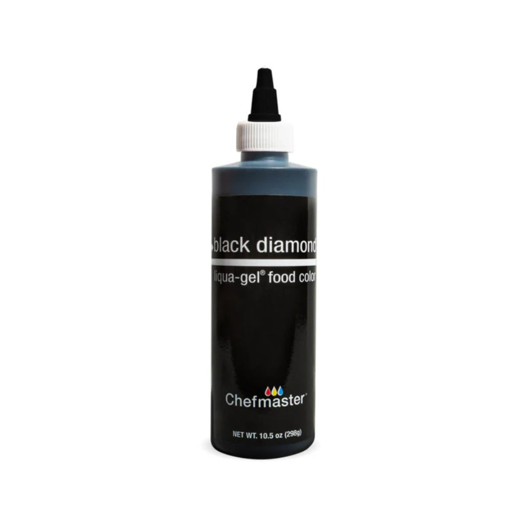 Chefmaster Black Diamond Liqua-Gel® Liquid Food Coloring is your go-to color to create a wide range of shades of rich Black and Gray with a very slight green undertone. It is our darkest and deepest shade of Black food coloring.