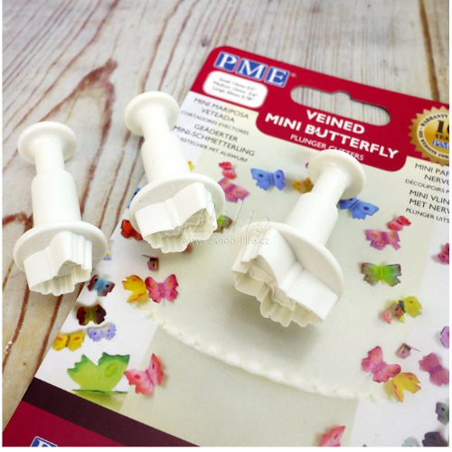 This fun set from PME contains three mini butterfly cutters! These cutters have a handy plunger system. This not only allows you to easily release your butterflies, but you also create a lovely relief in your decoration. Perfect for decorating (mini) cupcakes, cookies and other sweet treats. Size: approx. 1,3 cm, 1,5 cm and 2 cm. Content: 3 cutters.