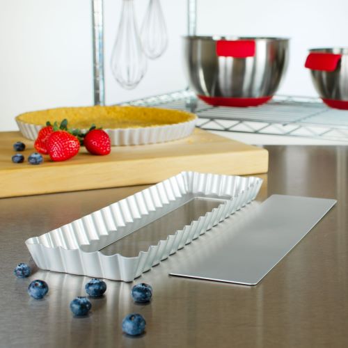 Bake tarts, quiches, pies, and a variety of other sweet and savory recipes with Fat Daddio’s ProSeries Fluted Tart Pans. These pans are great for creating firm and flaky crusts. Simply push through the bottom to de-pan. Use the removable bottom to display and serve your tart. Seamless design with fluted sides. Safe for citrus-based foods.