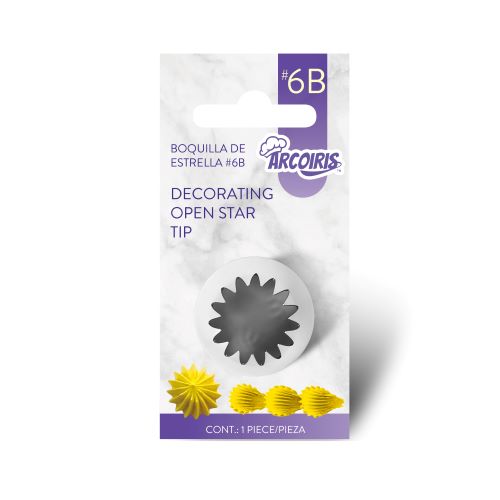 Give your cupcakes the star treatment. Large open star decorating tip pipes drop flowers, shells, swirls and star techniques for stunning cupcakes, cakes and cookies. It's a great tool for any decorator. Does not use a coupler; simply drop tip in bag, cut off end and fill. Stainless steel tip is engraved with its number for easy identification and holds up to years of use. Top-rack dishwasher safe.