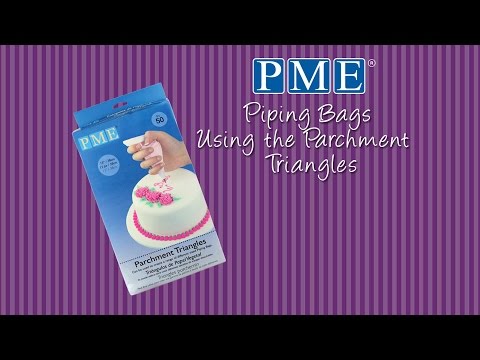 PME Parchment Triangles, the easy way to create different sized piping bags. In a few simple steps you can roll your own strong disposable piping bags for Royal Icing, Buttercream, Chocolate and Candy. Can be used with or without an adapter/coupler and piping nozzle. Each triangle measures 38 cm (15 inches).