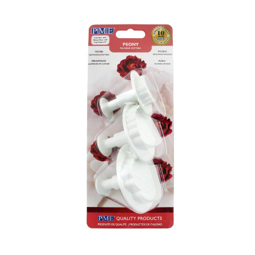 Easily make the most popular flower at this moment, the peony! This set of three plunger cutters from PME is easy to use and gives your leaves a great impression. Great on cakes for many special occasions. These cutters have a handy plunger system. This not only allows you to easily release your sign, but you also create a beautiful relief in your leaf. Size: approx. 2,4 cm, 3,8 cm and 4,5 cm. Content: 3 cutters.