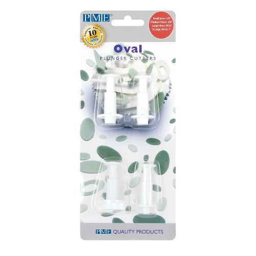This Set of Oval Plunger Cutters is ideal for use with a wide range of edible and non-edible materials including: Sugar paste (rolled fondant), petal paste (gum paste), marzipan, craft clays and much more. Dimension: Small 6 mm (0.2") Medium 10 mm (0.4") Large 14 mm (0.6") Extra large 25 mm (1")