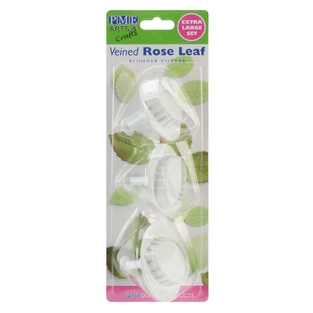 This Set of Veined Rose Leaf Plunger Cutters is ideal for use with a wide range of edible and non-edible materials including: Sugar paste (rolled fondant), petal paste (gum paste), marzipan, craft clays and much more. Dimension: XL 45 mm (1.8"), XXL 50 mm (2"), XXXL 55 mm (2.2").