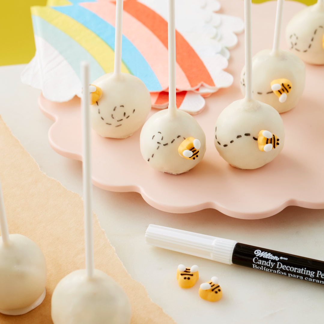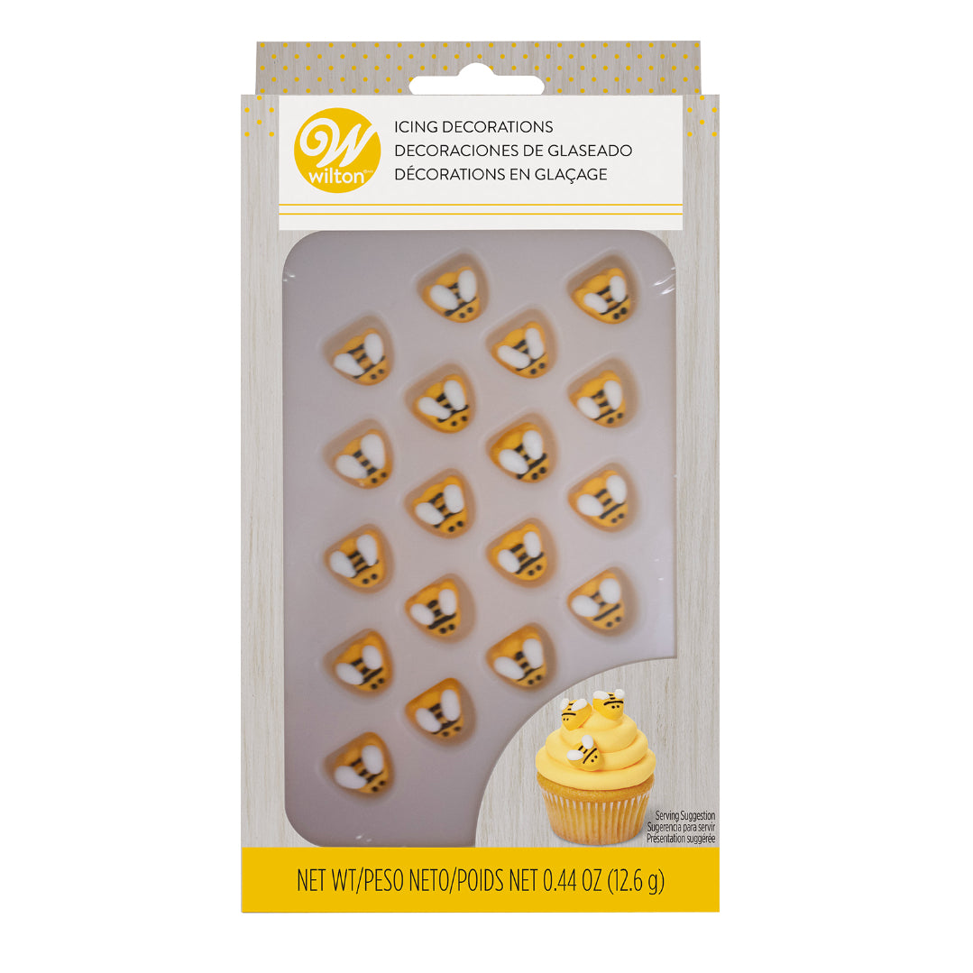 Top your treats and make them sweeter than honey with the Wilton bumble bee royal icing decorations.Colour: Yellow and black.Quantity: 18 count.Made in a facility that also processes egg.