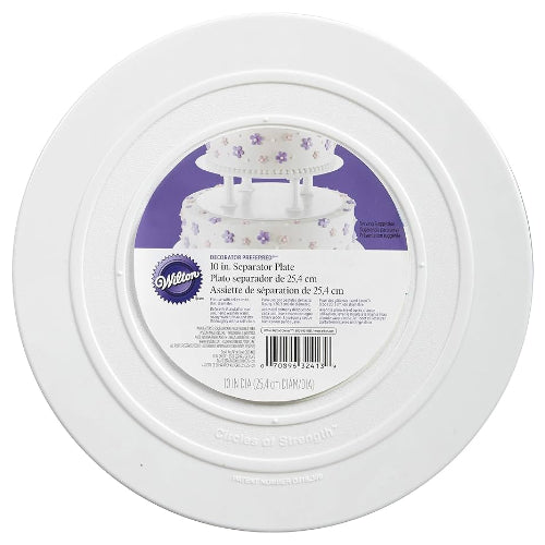 A fresh, clean shape which puts all the focus on your beautiful cake. Built for unmatched stability, with our patented Circle of Strength design. Plate feet fit securely on Wilton pillars, available in many styles. Guaranteed non-breakable.