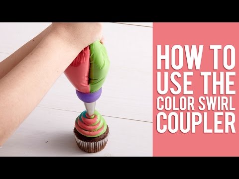 Pipe three colors of buttercream at the same time using this Color Swirl cupcake decorating set. Large coupler works with 16 in. disposable or featherweight decorating bags. Great for personalizing treats for special holidays and celebrations; try red, white and green for Christmas or your favorite team or school colours; also fun for bridal and baby showers. Large coupler fits any large Wilton piping tip To use: Prepare three bags with individual coupler pieces; connect pieces and place tip on connected coupler; twist on ring to secure tip to bags; fill piping bags as desired. To switch tips, unscrew ring and replace with new piping tip. Quantity: Includes 1 Color Swirl coupler (3 coupler pieces, 1 ring); two decorating tips (round tip 1A, star tip 1M); six 16 in. disposable decorating bags; instruction sheet. Material: Coupler is plastic; tips are stainless steel; bags are plastic. Hand wash before first and after each use; tips and coupler are dishwasher safe; bags are disposable, intended for one time use.